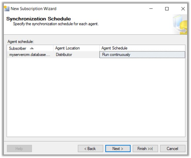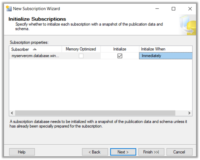 We can specify if we want to snapshot to be created immediately so that it is available while defining subscriptions. We can also schedule the Snapshot Agent or we can run it continuously.