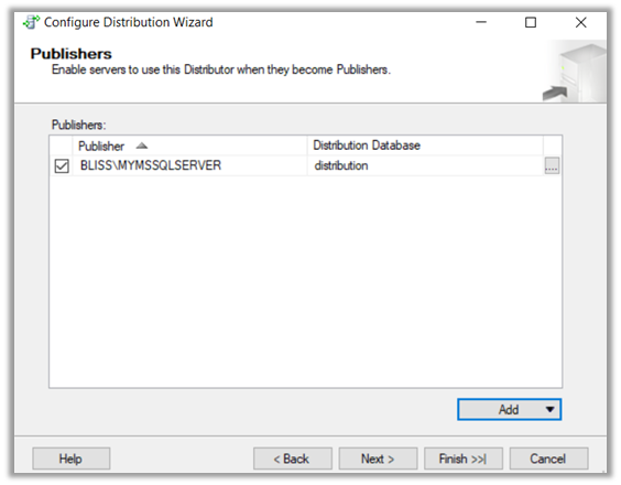 Let us start by configuring the Distributor first. The distributor can be at the local or remote server.