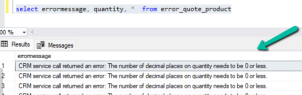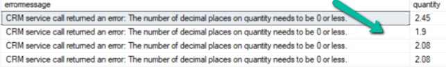 CRM service call returned an error: The number of decimal places on quantity needs to be 0 or less