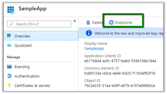 Also, we can get the Authentication Token Endpoint, for that navigate to Overview à Endpoints