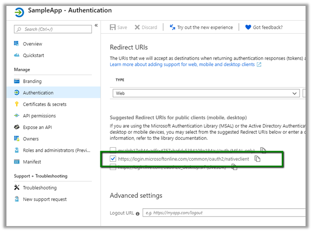 // Authenticate the registered application with Azure Active Directory.