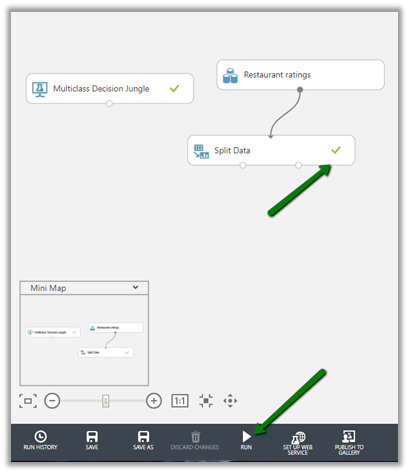 Click on Run to generate the output till the Split Data module. After the successful run, we’d see the green check on the module.
