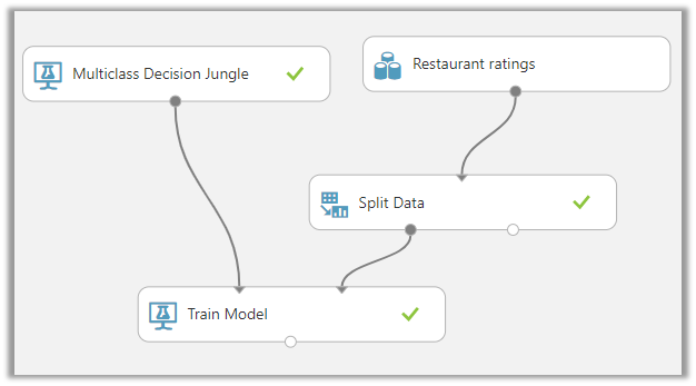 Next let us apply the appropriate algorithm, based on User ID and Place we want the rating to be predicted, so let us select the Multiclass Decision Jungle algorithm here and drag it to the experiment area.