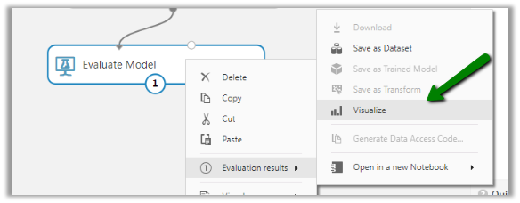 After the successful run, right-click the Evaluate Model and select Visualize to see the result.