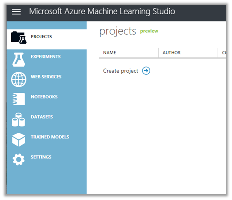 The project is a collection of Experiments, Web Services, Notebooks, DataSets and Trained Models grouped together. Experiments are where we get, process, transform, train, evaluate our data. WebServices are created from our experiment, which makes the predictive model usable from within the other application. Datasets refer to the data that we use for our experiment.