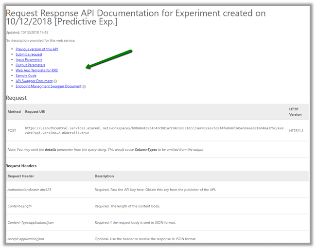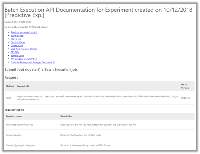 Similarly, we can click on Batch Execution link inside the web service Dashboard to access the documentation for Batch API Execution.