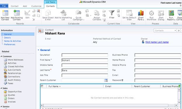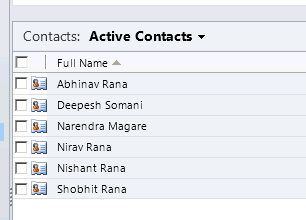 Now clicking on Add Existing Contact button on the ribbon should only show those contact records which have last name equal to “Rana”