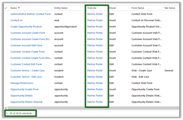 Below are the Entity Forms associated to the Partner Portal Web site created in CRM.
