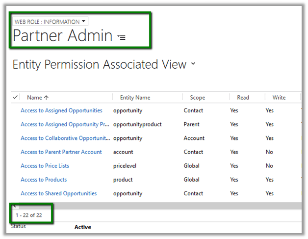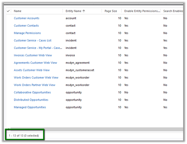 Below are the Entity Lists associated to the Partner Portal Web site created in CRM.