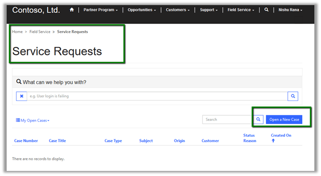 The portal user can raise Service Requests from within the portal.