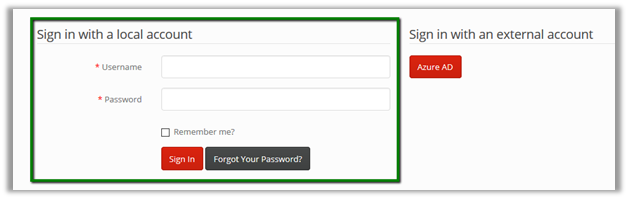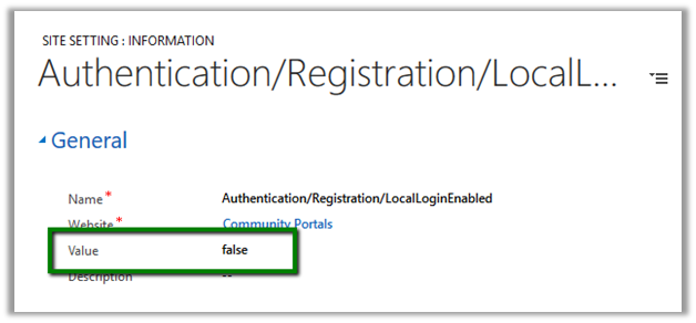 Setting both the above site settings as false, presents the user with the only option of using Azure AD for signing in to the portal.