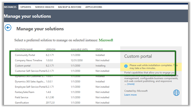 Manage Dynamics 365 Portal Instance