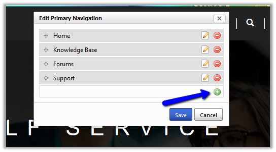 This opens up the dialog box, here we can edit or insert a new navigation link. To add new navigation link click on “+”