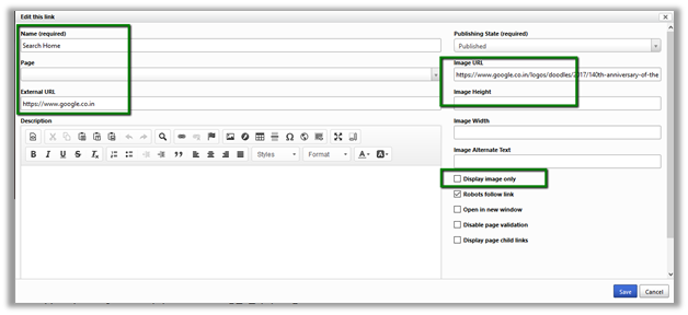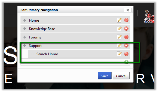 Similarly, we can add new child links or move a link as child link which then appears as drop down. Here we have moved the new Search Home link inside Support by dragging.