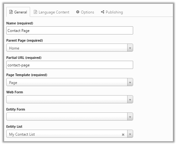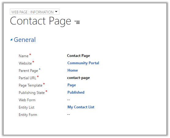 Associate the Contact Page to the Entity List record inside CRM