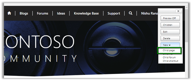 From Portal – Log in to Portal with Admin rights and click on New – Child Page to create a new Page