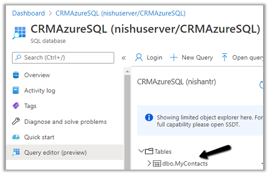 Below is our AzureSQLTable Dataset connected to the MyContacts table.