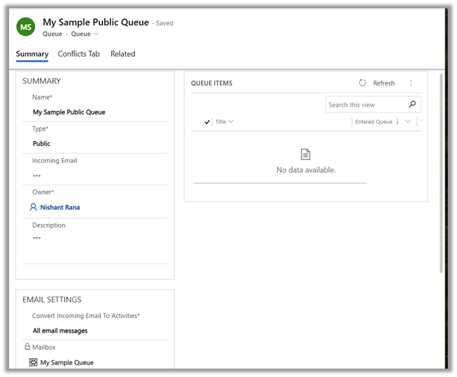 Back in the Queues area, we will have Items I am working on System View and Queues I’m a member of filter set by default.