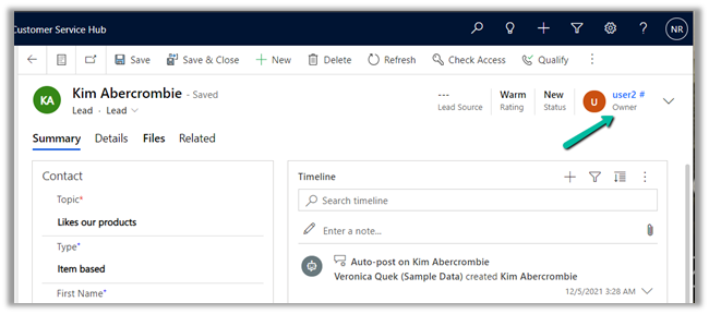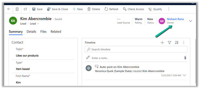 Here we have selected the lead record with Title – Kim Abercrombie.