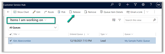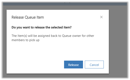 A dialog box appears that informs that the item will be assigned back to the queue’s owner and other members can pick up.