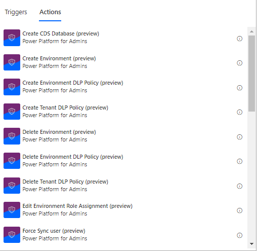 Below is the example of the Create Environment action, followed by Create CDS Database.