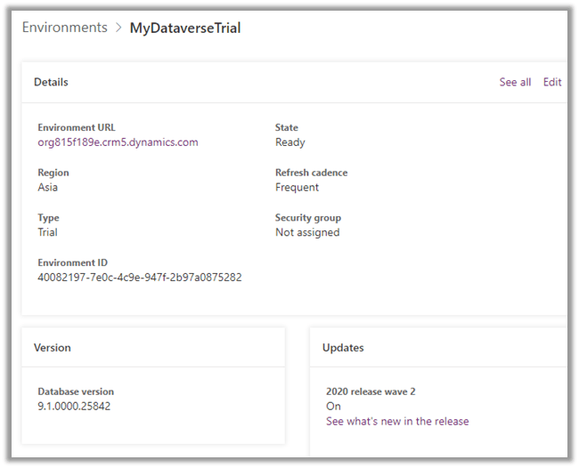 Here we are creating a trial environment in Asia region followed by a CDS database in it with base language – Hindi and currency code as INR
