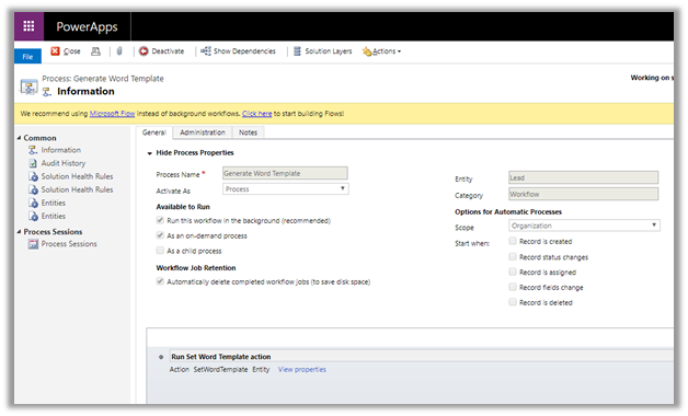 Let us continue our previous post and this time instead of calling SetWordTemplate action / request from a workflow, we will call it using a custom ribbon button.
