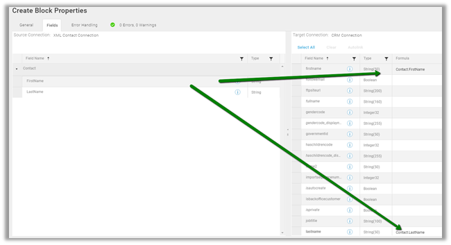 For Create Contact (CRM) block we have mapped the first name and last name field