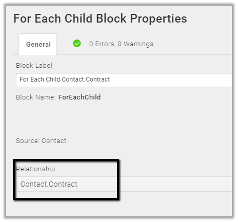 For For Each Child block select the relationship.