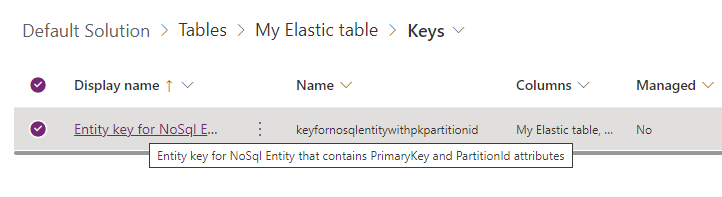 We will have the alternate key auto-created by the system when we create an elastic table.
