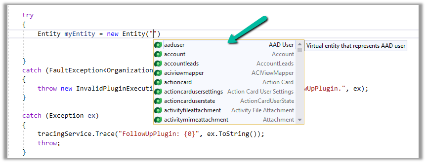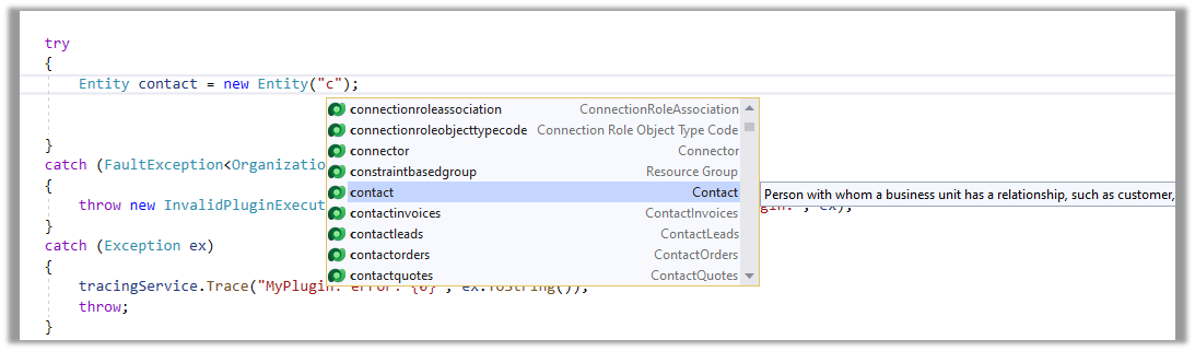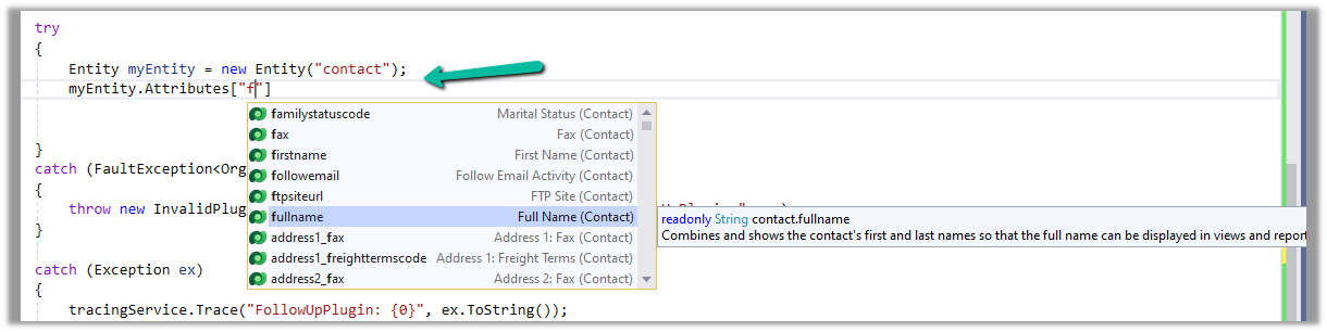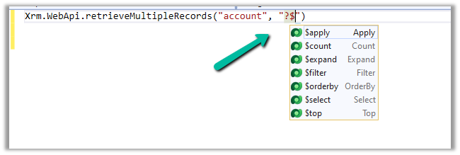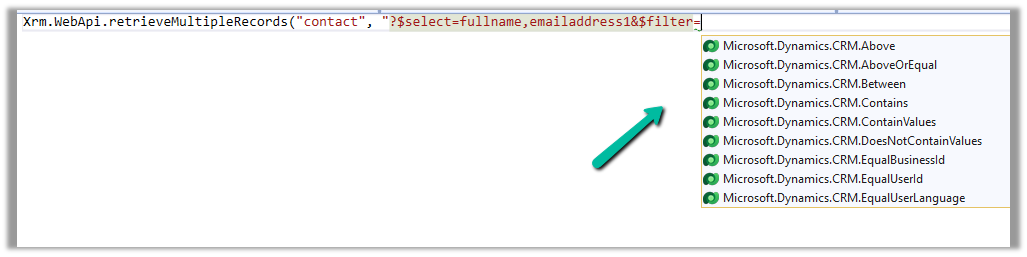 IntelliSense is not limited to C# code but also applies to OData. (Retrieve operations)