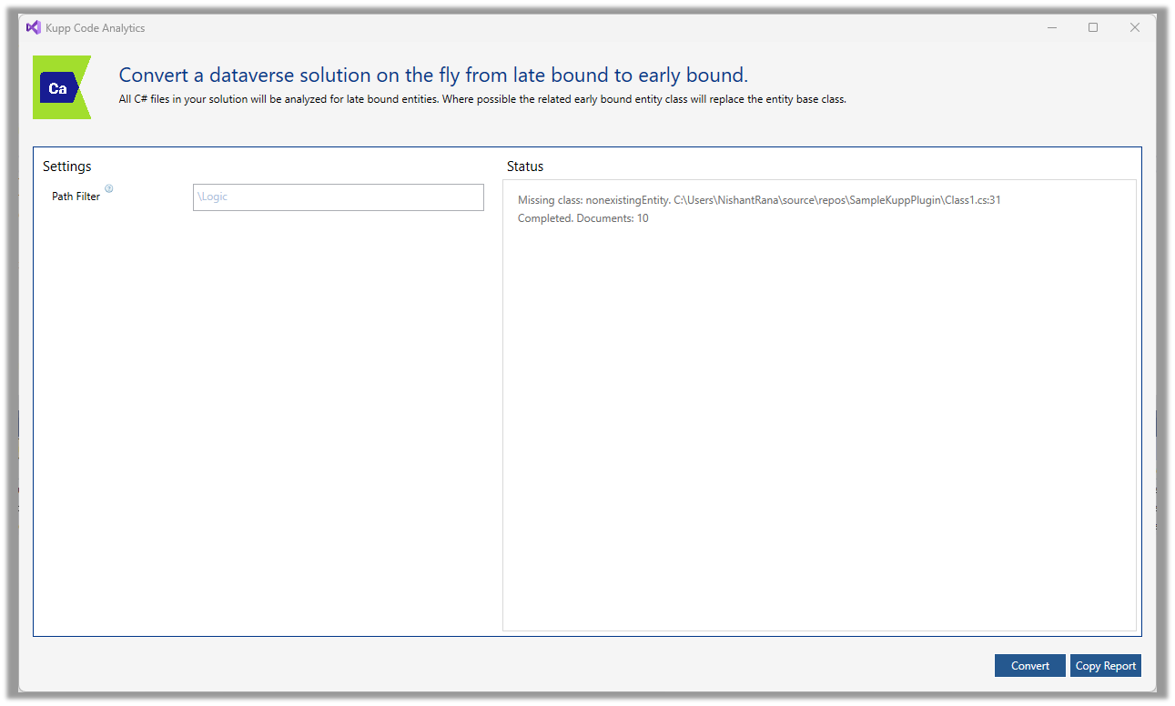 In this blog post, we’d have a brief look at Kupp Code Analytics. Kupp Code Analytics is a powerful Visual Studio Extension, for Microsoft Dynamics 365 and Power Platform (Dataverse). The technical team can use the tool to code faster, easier, and more efficiently, and at the same time can use the tool to analyze and get insights and adhere to best practices.