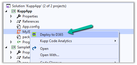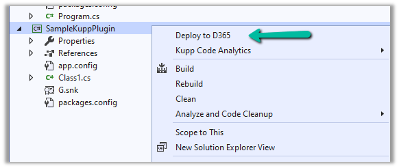 To deploy the plugin, right-click on the project and select Deploy to D365 option.