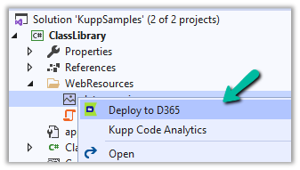 For the Web resource file, right-click and select the Deploy to D365 option.