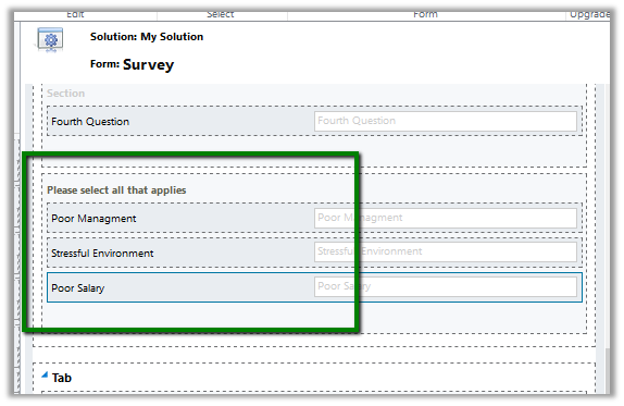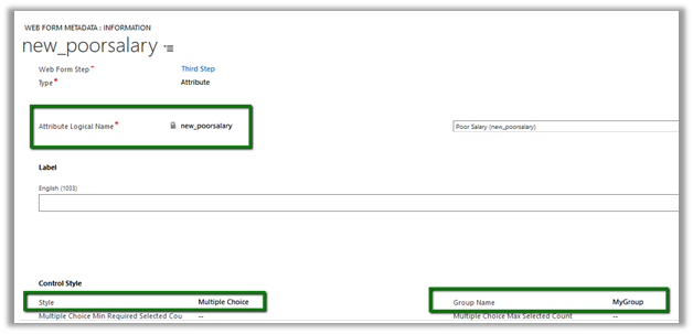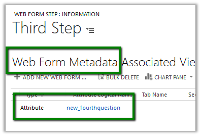 We have also created associated Web Form Metadata record of the type attribute for defining the label and other properties for the new field named fourth question in our survey form.