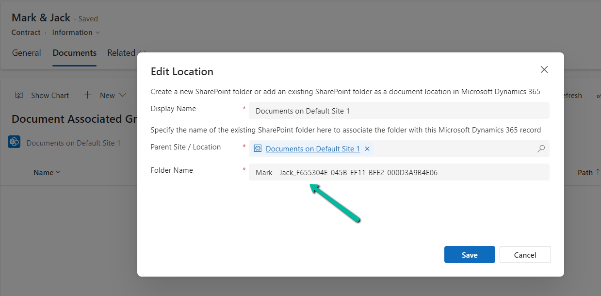 Below is the GUID / record we have specified while creating the SharePoint Document Location record, the SharePoint Document location configured for that particular table.