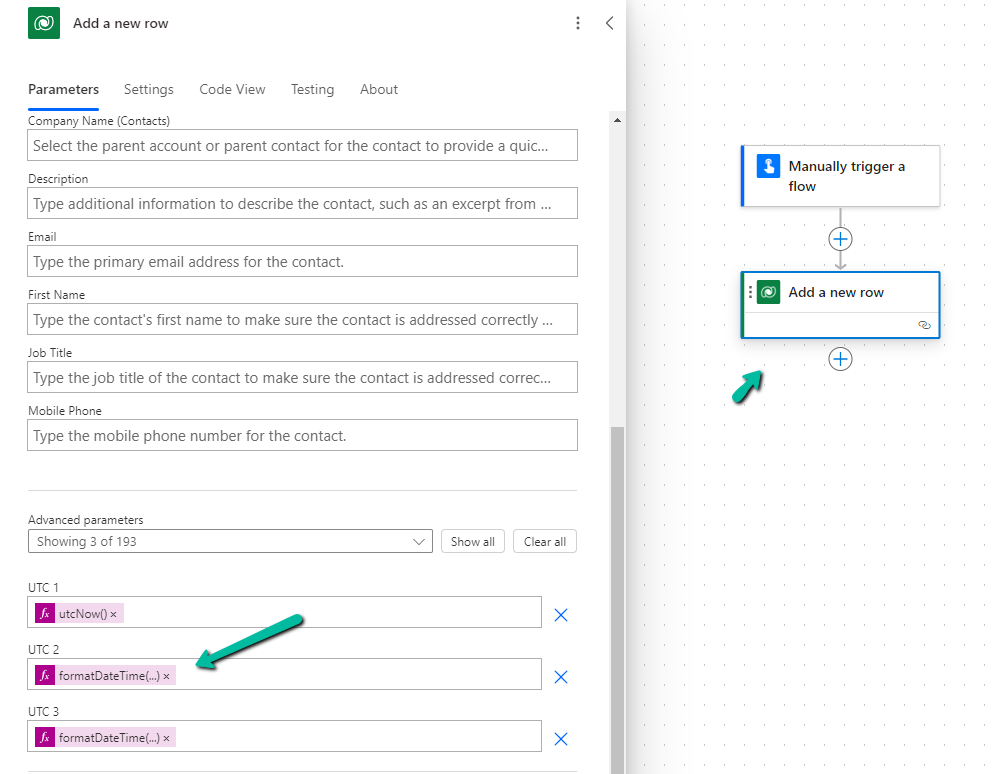 Below we are creating a contact record and setting values for 3 date time fields, UTC1, UTC2, UTC3.