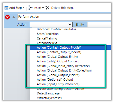 We might see some of the custom actions not appearing in the Actions list inside the Perform Action step of the workflow.