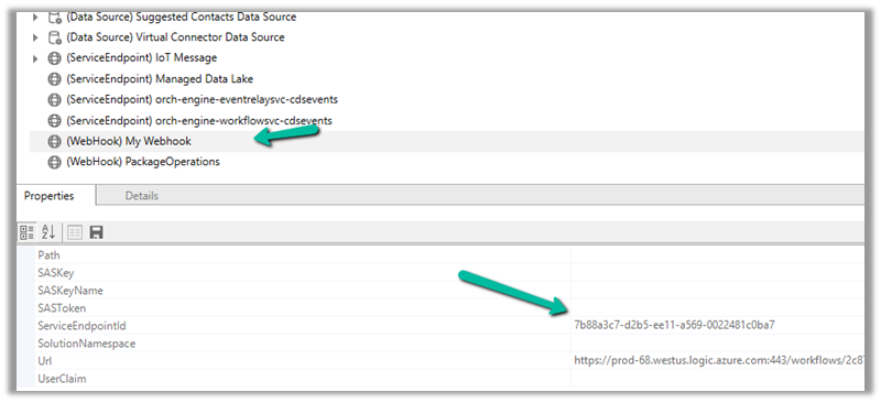 Below is our Webhook registered, note down the ServiceEndpointId.