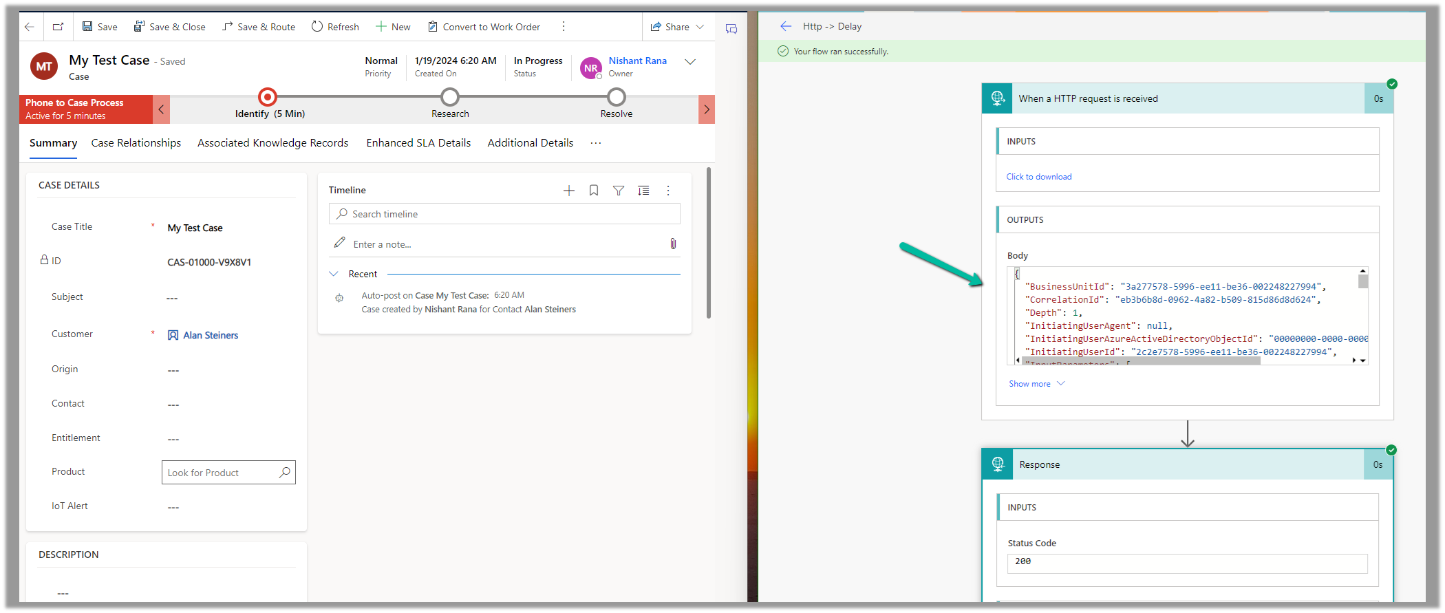 Below is our cloud flow that we have registered as a webhook through the plugin registration tool.