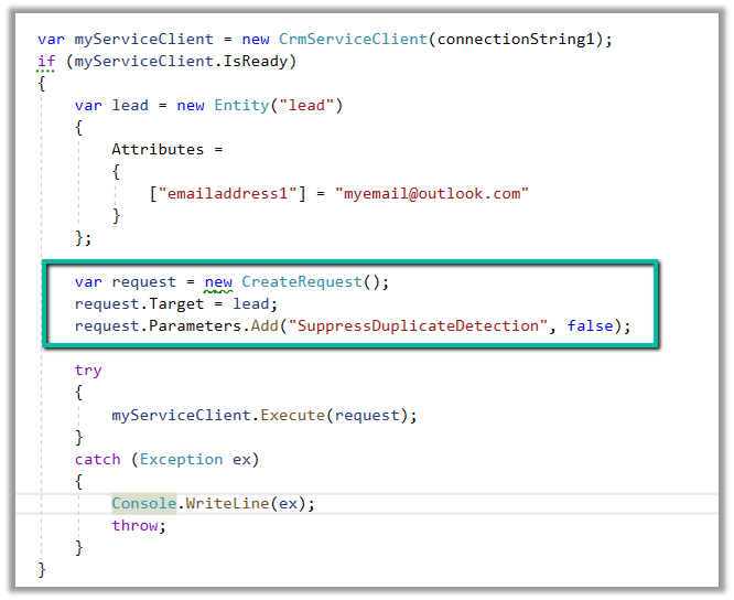 In the previous post, we saw how we can use the SuppressDuplicateDetection parameter to throw errors in case of duplicates when creating or updating a record.
