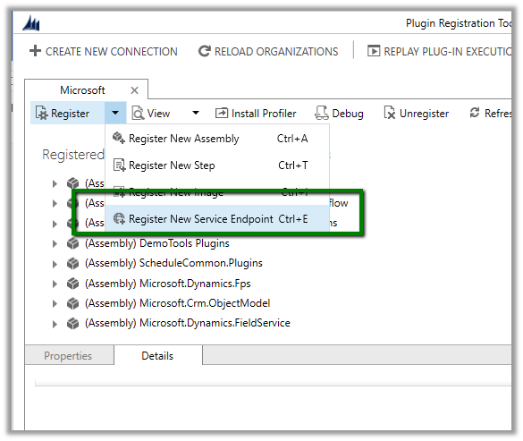 As a first step, we need to register a service end point through plugin registration tool.