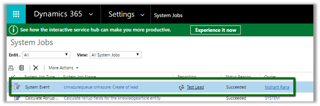 Here we would implement a basic scenario, every time a lead is created in CRM we’d pass this execution context information to the queue. The app then reads and shows the information.