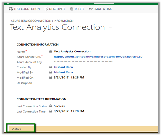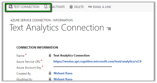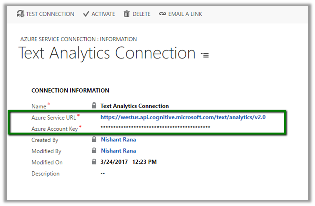 As a first step, we need to set up Text Analytics Service and connect it to our CRM Online. Follow the below post for that