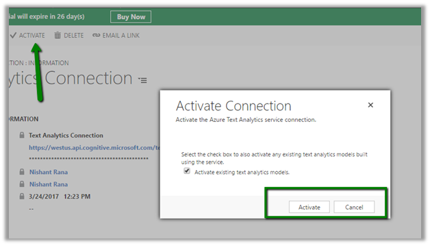 Click on Activate to activate the model.