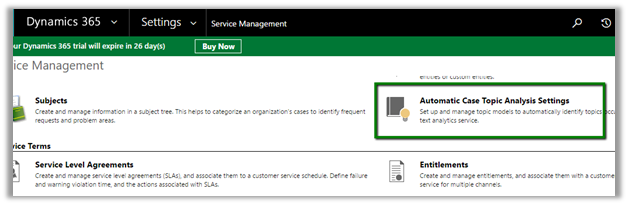 Go to Service Management – Automatic Case Topics Analysis Settings
