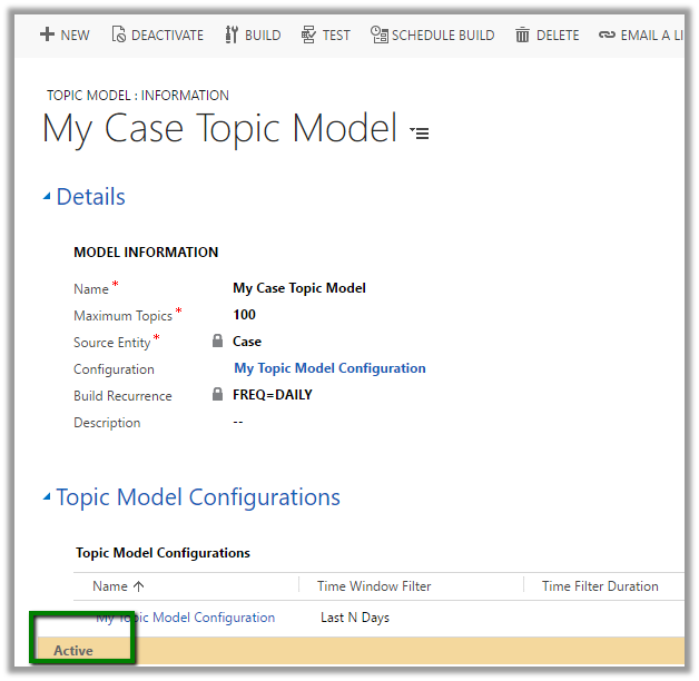 Once we have tested the configuration we can then activate the model.