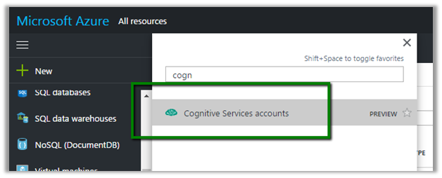 Search for Cognitive Service Accounts