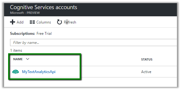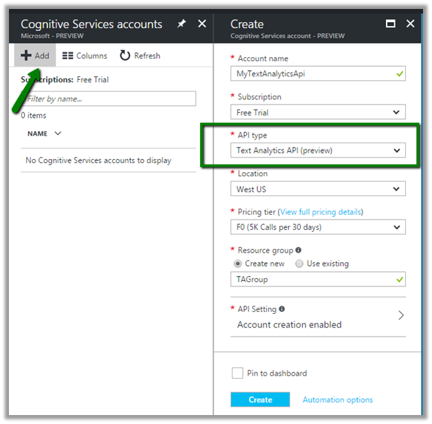 Select Text Analytics API as API Type.