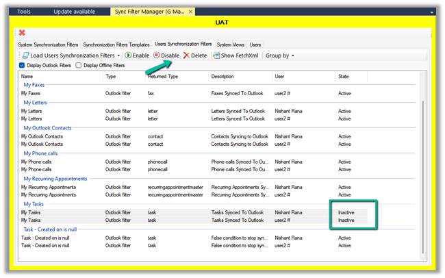 On disabling the filter, we can see their status updated as inactive.